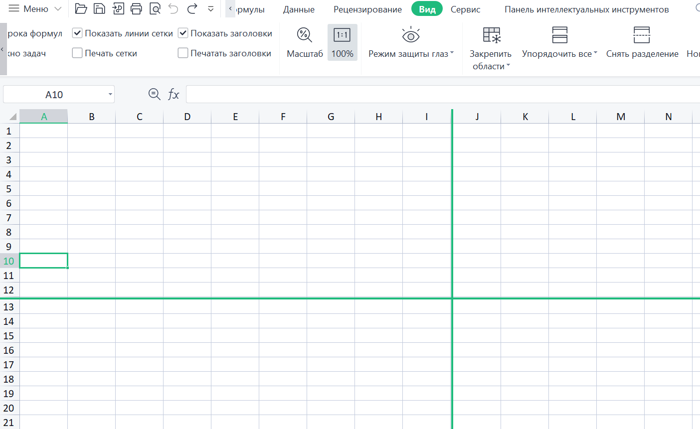 Теперь будут закреплены и строки, и столбцы выше и слева от выбранной ячейки.