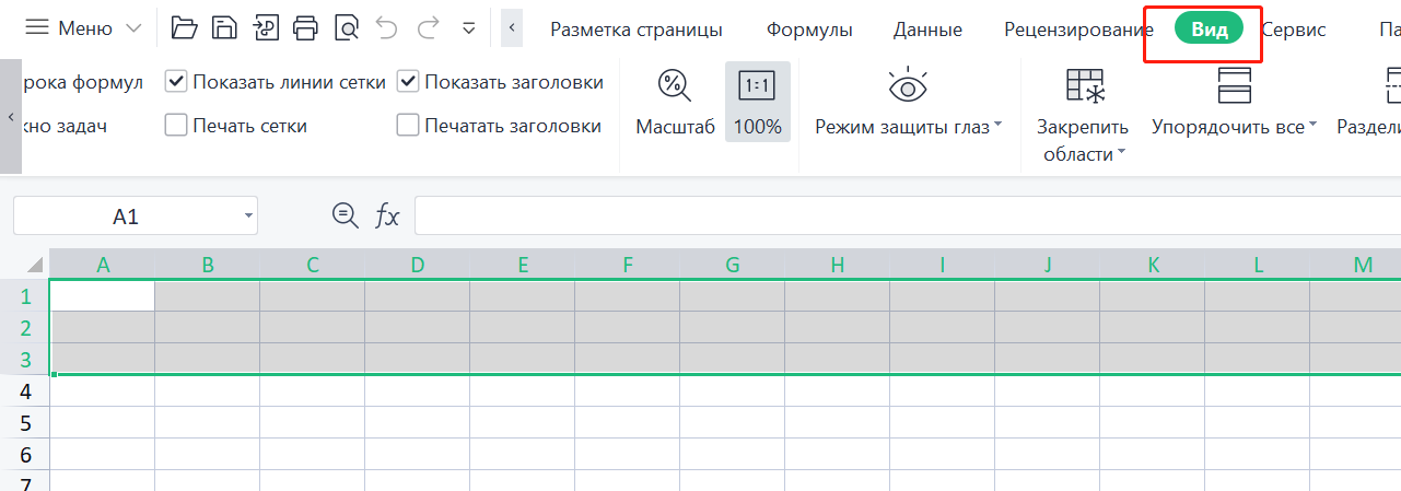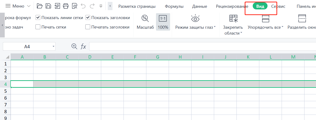 1. Откройте таблицу Excel и перейдите на вкладку "Вид".