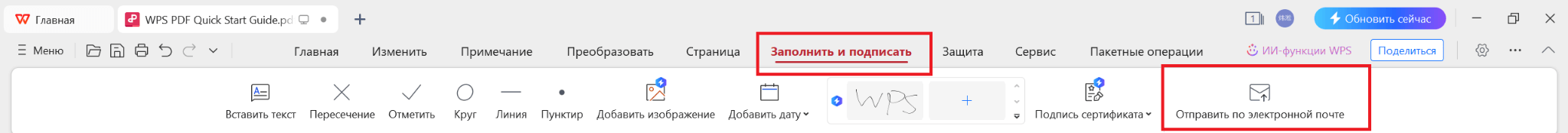 Шаг 2: После сохранения PDF перейдите на вкладку "Заполнить и подписать" и затем нажмите кнопку "Отправить по электронной почте".