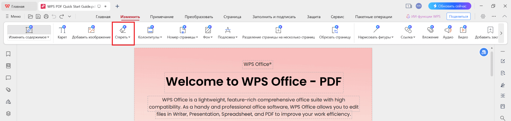 Редактирование текста: С помощью WPS PDF учителя могут изменять текст в PDF документах, добавляя новые разделы или вопросы, что упрощает процесс обновления или корректировки материалов без необходимости создания новой версии.