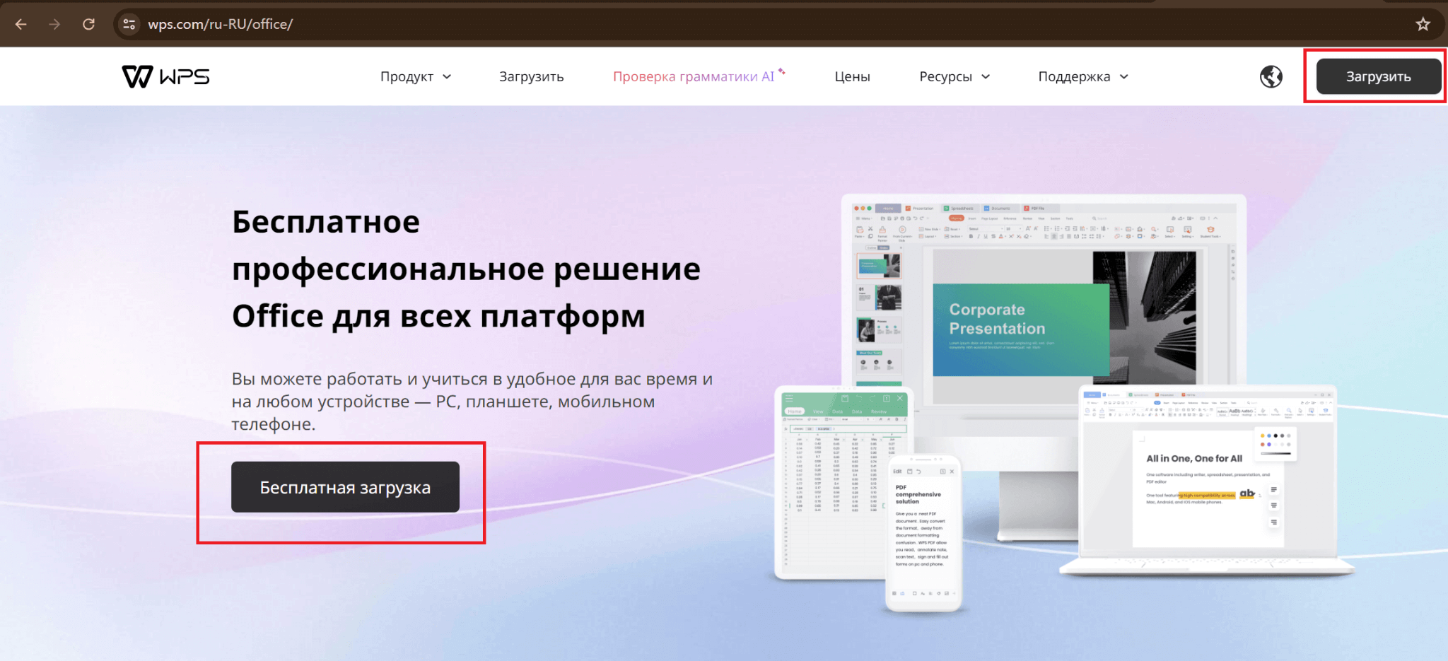 Шаг 1: Перейдите на сайт WPS Office: https://ru.wps.com/