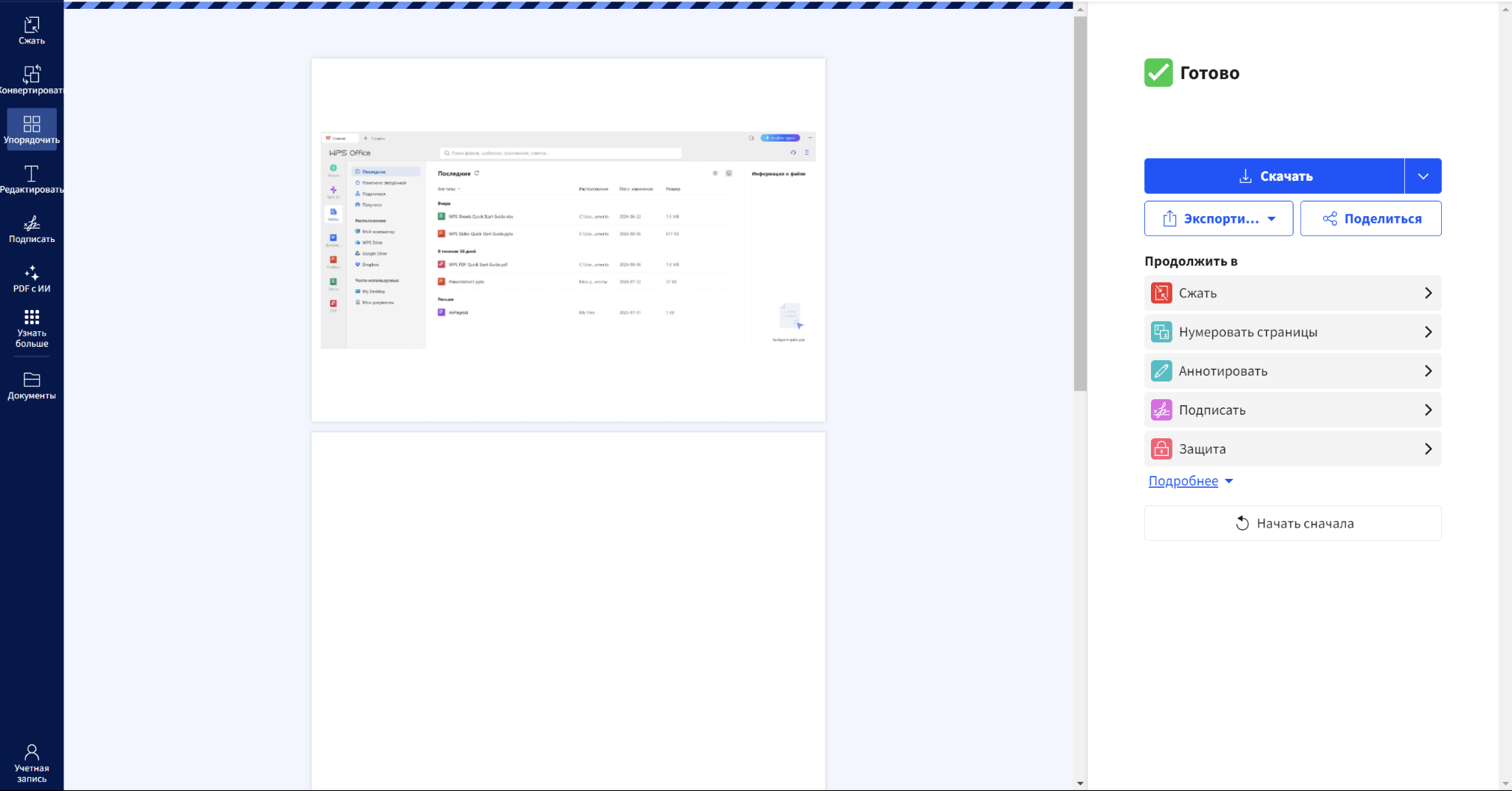 Smallpdf Merge PDF предлагает функциональные инструменты PDF, которые помогают пользователям выполнять задачи, связанные с PDF. Однако Merge PDF может не подойти пользователям, ищущим более универсальное офисное ПО. WPS Office идеально подходит для таких пользователей.