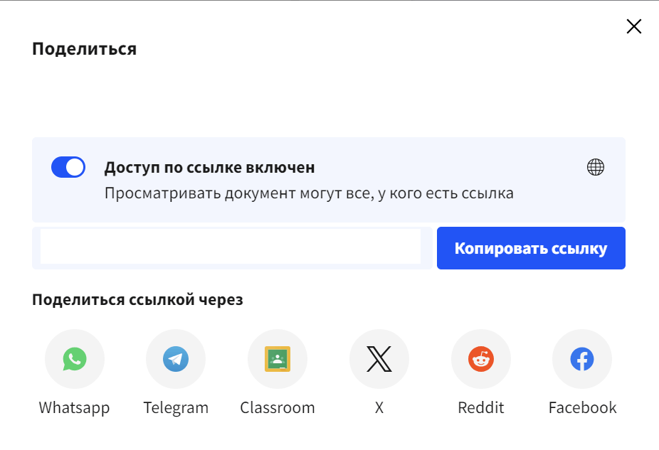 Нажатие на вкладку «Поделиться» создаст ссылку, которую вы можете поделиться с вашей командой для доступа к документу.