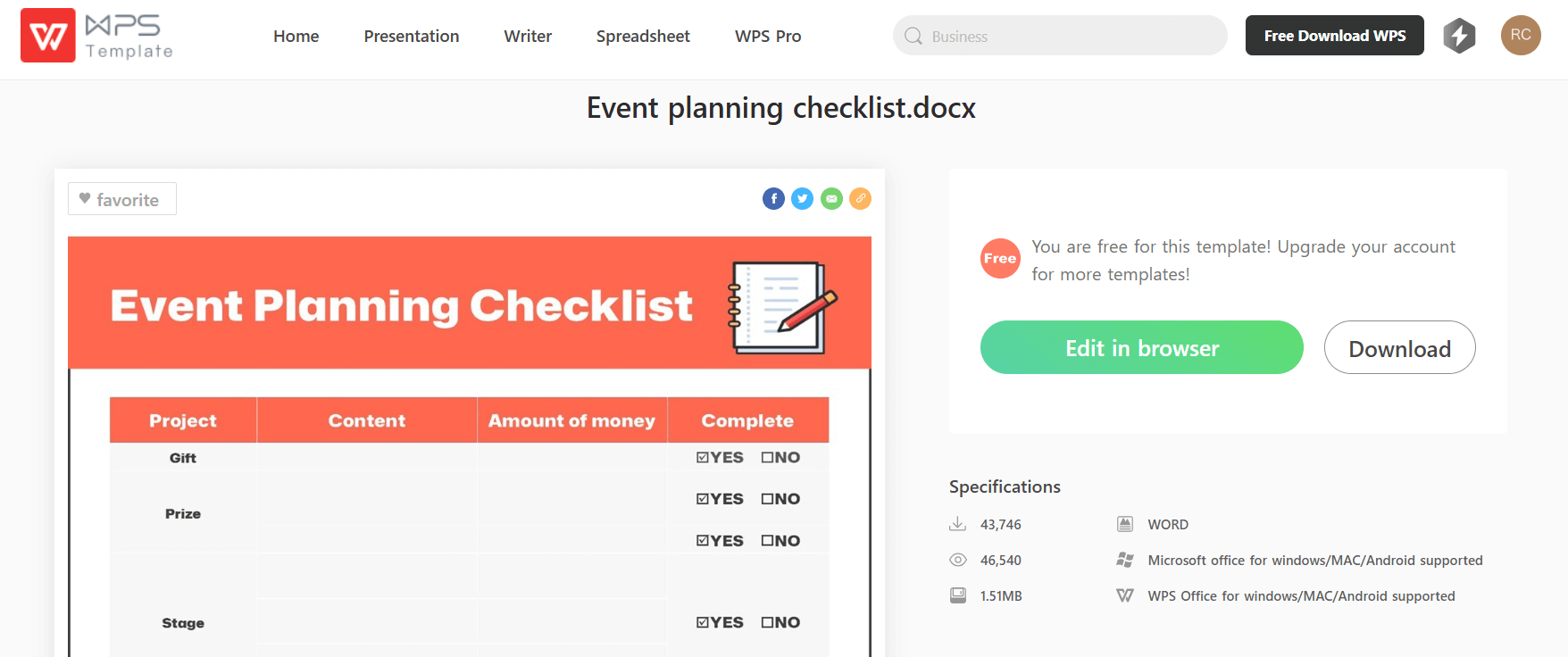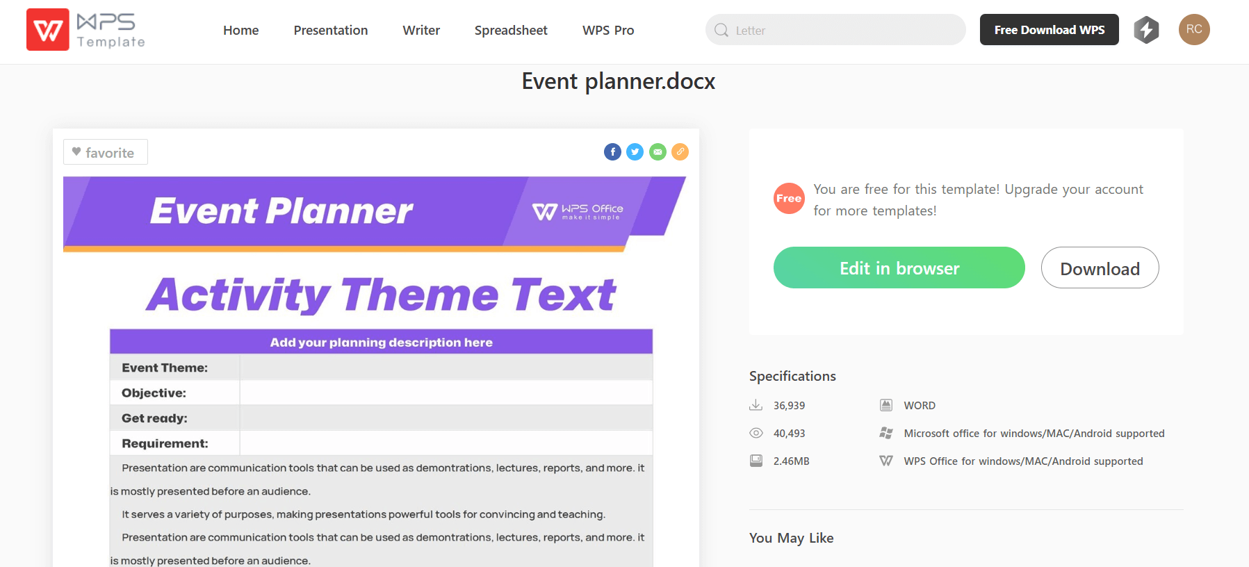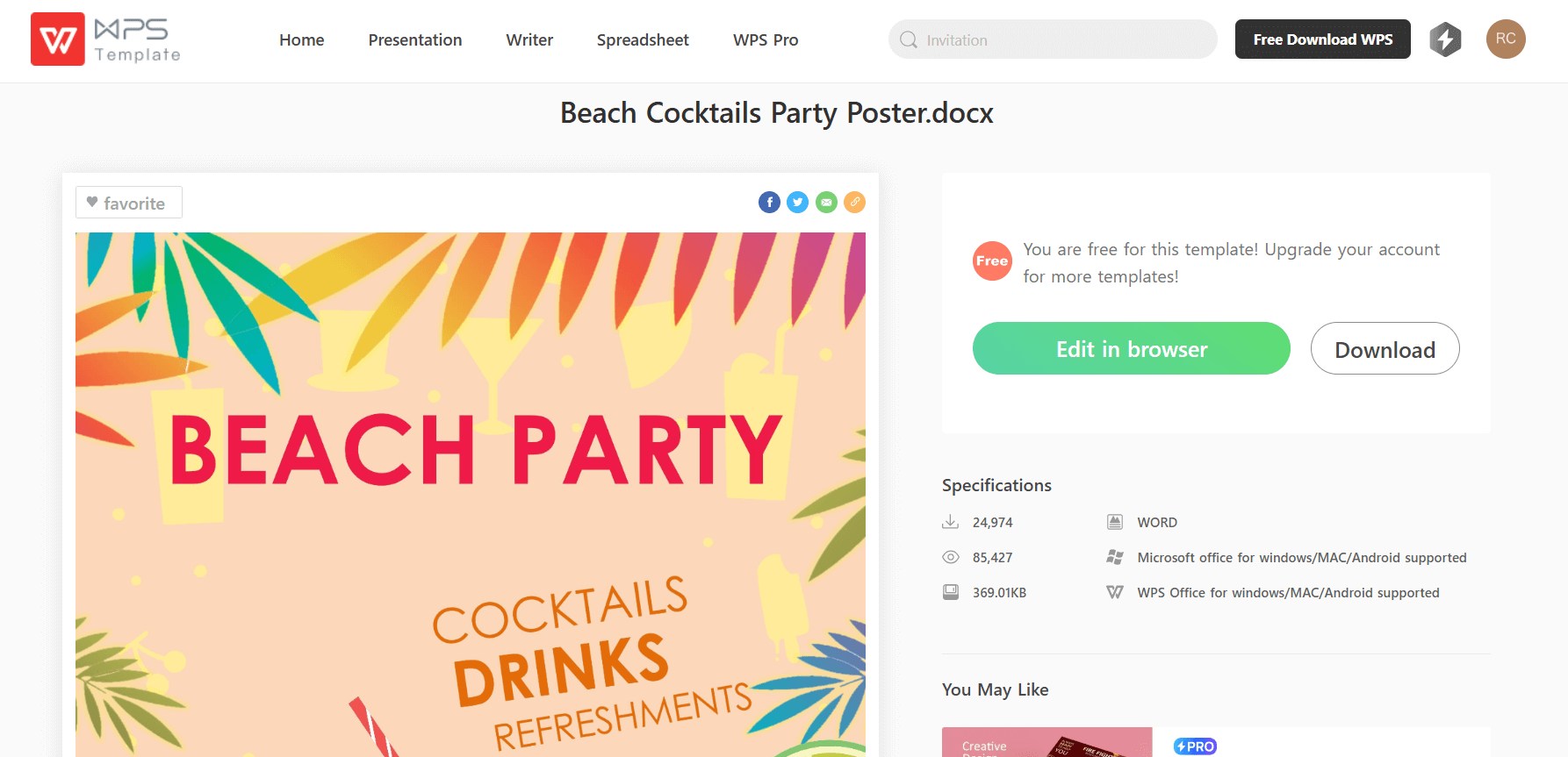 Когда дело доходит до редактирования любого шаблона для планирования вечеринок, WPS Office является одним из самых универсальных и экономически выгодных инструментов. Он без проблем работает с форматами Word, Excel и Google Docs, что означает, что вы можете открывать, редактировать и делиться шаблонами без проблем с совместимостью.