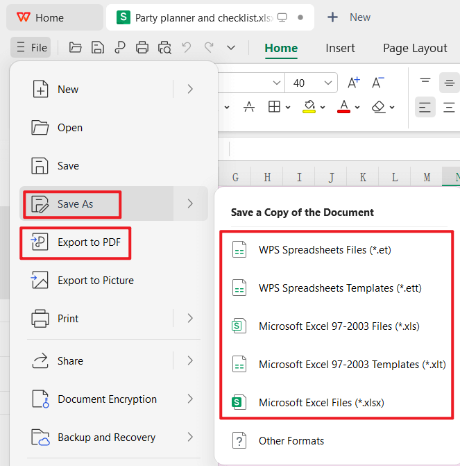 Сохраните ваш настроенный шаблон планировщика вечеринок в виде файла Excel или PDF и поделитесь им с вашей командой.