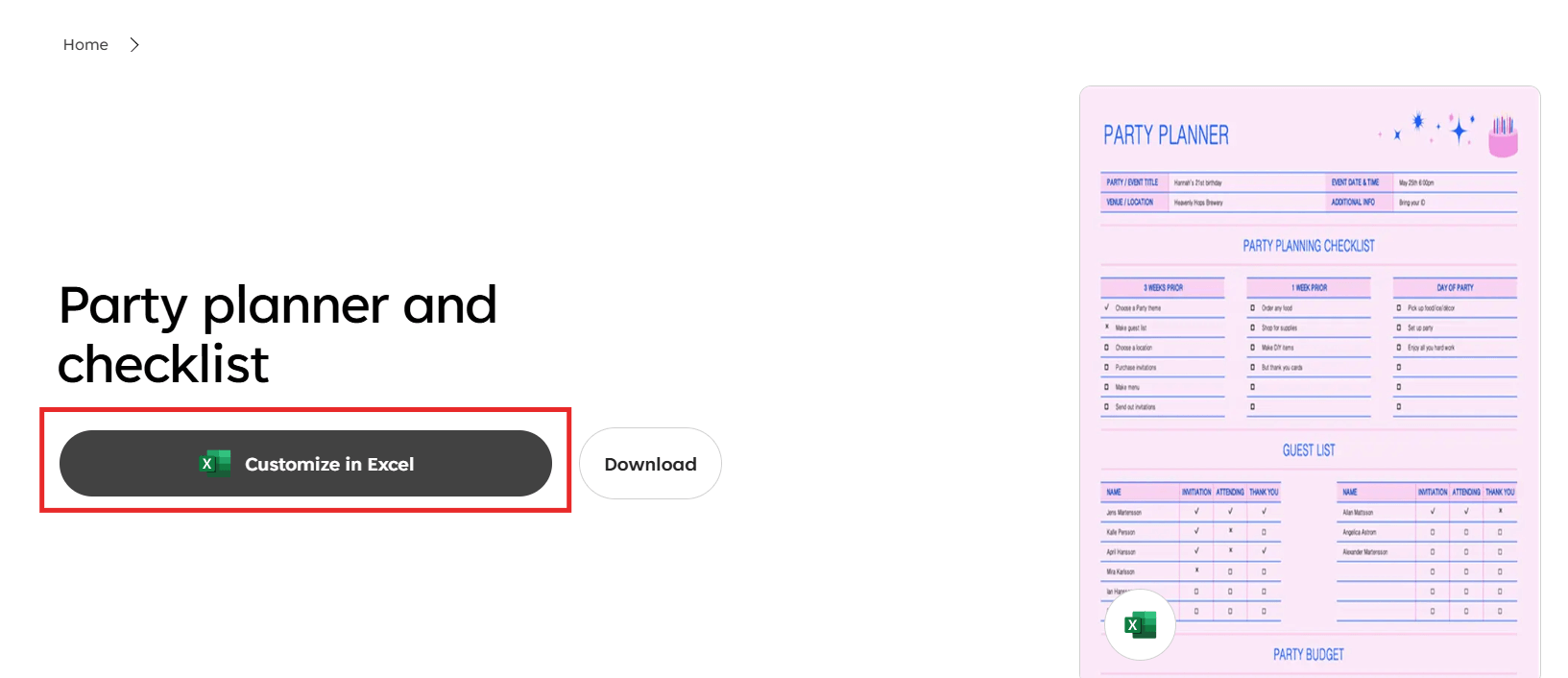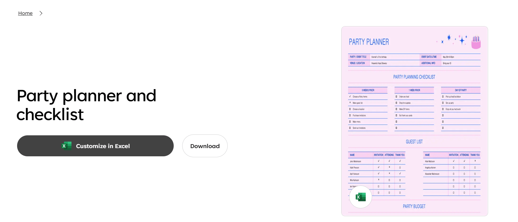 Перейдите на страницу Party Planner and Checklist и нажмите «Скачать».