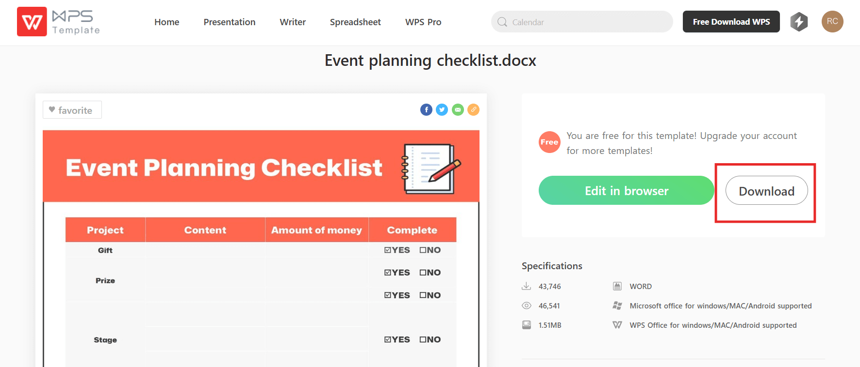 Перейдите на страницу Event Planning Checklist Template и нажмите «Скачать».